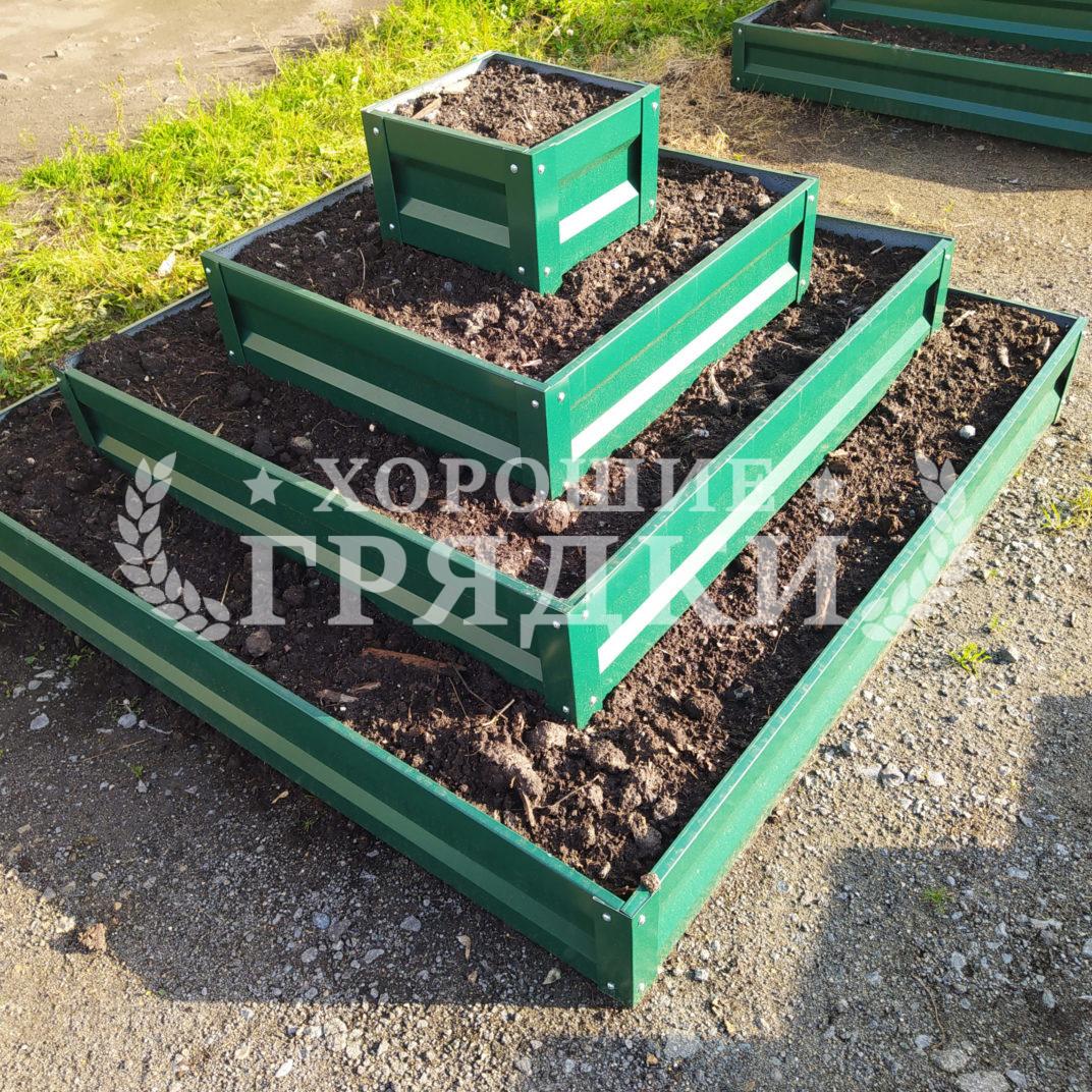 Клумба зеленая «Квадратная 3 яруса» 1.1х1.1м - 0.7х0.7м - 0.3х0.3м